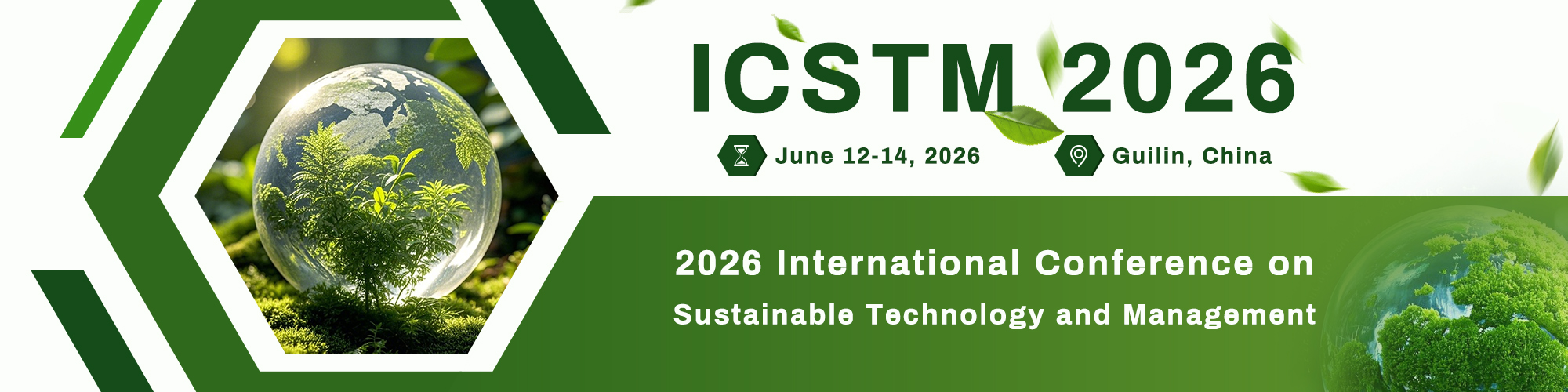 International Conference on Sustainable Technology and Management 2026 (ICSTM 2026) will be held on June 12-14, 2026 in Guilin, China. ICSTM 2026 is conceived as an academic forum for scholars, researchers, and professionals to present and discuss recent advances, theoretical developments, and empirical findings in the intersecting domains of sustainable technology and management.